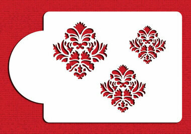 Add a beautiful touch to your cakes with this stencil that has three Damask patterns in different sizes. The sizes are 2", 2.5" and 3" and are made of durable 10 mil food grade plastic for high-quality, professional, repeat use.