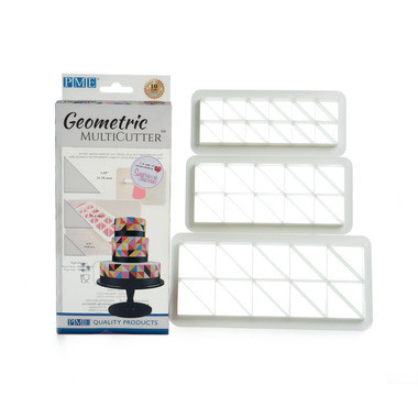 PME Geometric MultiCutter Right Angle Cutter Set makes it quick and easy to create the latest style of geometric patterned cake decoration in fondant, gumpaste, or marzipan.