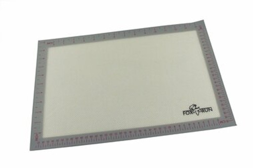 Use this silicone mat as a work top for your fondant or gumpaste creations. Its very handy to use on your baking sheets as well . The Fox Run Baking Mat is made from food-grade silicone and is reinforced with glass weave. The non-stick Baking Mat is designed for all oven types and provides even heat distribution to your baked goods. The Silicone Baking Mat features a handy measurement guide around the mat (inches & cm). This silicone mat has a work space of 24.4" x 16.5" .